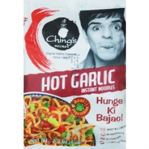 Chings Garlic Instant Noodles 75gIngredients: Noodles, wheat flour, Palm oil, Salt, potassium chloride, Wheat gluten, Sodium polyphosphate, Guai gum, Sodium Hydrogen Carbonate Seasoing mix: Mixed Spices, garlic powder, chilli powder, onion powder, ginger powder, celery capsicum, sesame, salt, Noodle powder, wheat flour, Corn flour, Tapioca Satrch, Contains Permitted Natural colour and added Flavours.Allergy advice: Ingredients contains, wheat soy & Sesame This Product was processed on Machinery And in a plant that also Processes Wheat , Peanuts, Treenuts, Sesame seeds, Soy, Milk.Cooking Instructions: Boil 225ml of water, Break noodles into 45 parts Add noodles & seasoning, Mix to boiling water cook for 2-3mins Stirring occasionally Serve hot Nutritional informationEnergy 1344kcalProtein 8.2g%Fat 13.5g%Carbohydrates 58g%Fibre 0